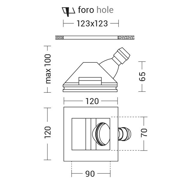 Faretto ad incasso in gesso rasato a scomparsa totale con attacco GU10 che consente di montare lampadina LED. Struttura quadrata, singola o doppia. La versione singola ? disponibile anche con luce laterale fissa inclinata di 45?. Per la versione 9831 cassaforma per installazione in muratura da ordin are come accessorio.