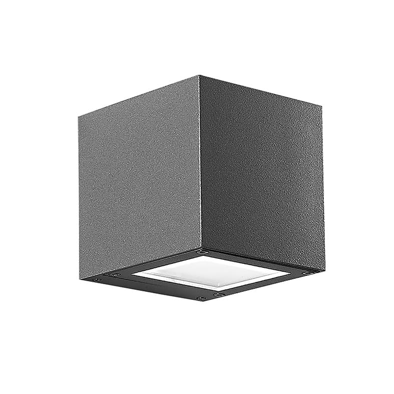 Apparecchio LED a parete per esterno (IP65) monoem issione e biemissione. Struttura in pressofusionedi alluminio verniciato con polveri poliestere a elevata resistenza ai raggi ultravioletti e alla corrosione, diffusore in vetro temperato. Guarnizion i in silicone e viti di chiusura in acciaio INOX.Disponibile in forma quadrata e stondata, in tre finiture (grigio, antracite e marrone) e in due temperature colore (3000K e 4000K). Disponibili giunti certificati IP68 per la realizzazione delle conessioni elettriche, sicure, durevoli e con barriera anticondensa.