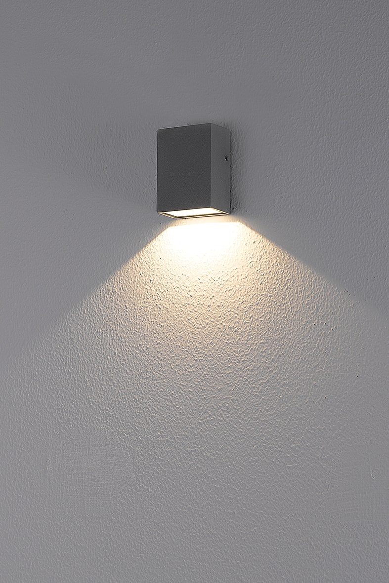 Apparecchio LED a parete per esterno (IP54). Strut tura in pressofusione di alluminio verniciato conpolveri poliestere a elevata resistenza ai raggi ultravioletti e alla corrosione, diffusore in vetro temperato. Alimentatore LED integrato. Disponibile nella versione piatta monoemissione con installazione a parete sul lato lungo, nella versione verticale biemissione con installazione a parete sul lato corto. Disponibile in due finiture e due tempe rature colore (3000K e 4000K). Disponibili giunticertificati IP68 per la realizzazione delle connes sioni elettriche, sicure, durevoli e con barriera anticondensa.