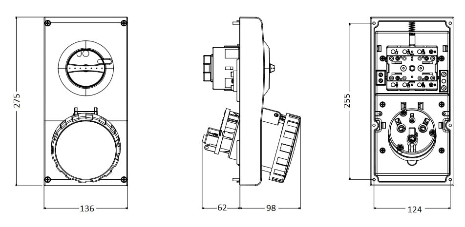 63A 2P+T 9h 380-415V 50Hz - 60Hz 136X275MM Morsetti a vite