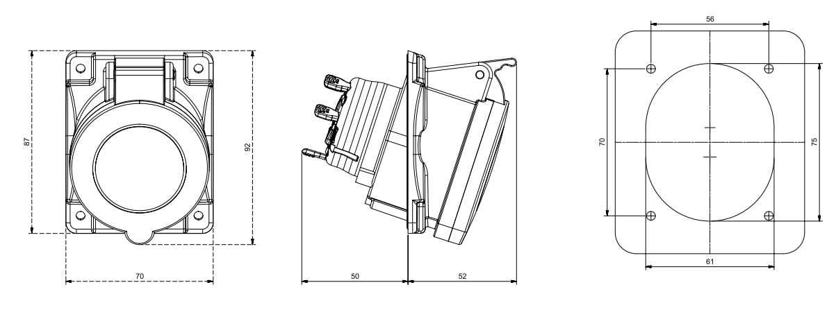 16A 3P+N+T 6h 346-415V 60Hz - 50Hz 70X87MM Morsetti a molla