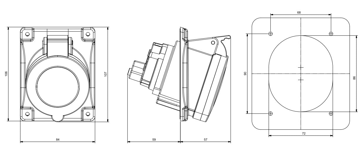 32A 3P+N+T 6h 346-415V 60Hz - 50Hz 84X106MM Morsetti a vite