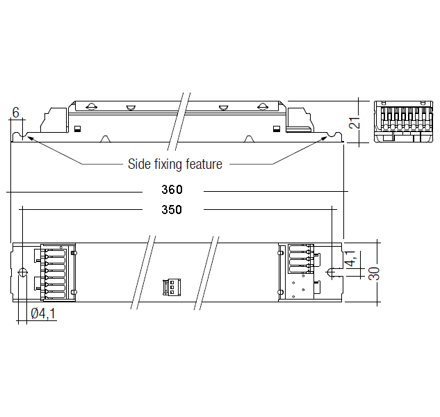 PCA T5 EXCEL one4all lp y II, 14 – 80 W. Reattore gestito con microprocessore Xitec II. Classe energetica massima CELMA EEI = A1 BAT. Regolazione precisa e priva di disturbi grazie al DALI, DSI, switchDIM o corridorFUNCTION. Durata vita nominale di max. 100.000 h (con ta 50 °C con un tasso di mal funzionamento = 0,2 % per 1.000 h). Gestione multilampada. Specifiche aree di memoria riservate ad OEM. Comandi DALI ampliati. 5 anni di garanzia. Interfacce: DALI. DSI. switchDIM (con funzione di memoria + gamma di regolazione selezionabile). corridorFUNCTION (3 profili preprogrammati). Interfaccia SMART per funzionamento con sensore SMART 5D 19f e plugs corridorFUNCTION. SMART interface per SMART plug cF – per l'impostazione dei profili corridorFUNCTION. SMART interface per SMART sensor con sensore luce. Funzioni: Intelligent Temperature Guard (protezione termica). Intelligent Voltage Guard (indicazione di sovratensione e spegnimento in caso di sottotensione). Riscaldamento ottimale dei catodi a qualsiasi livello di dimmerazione. Interruzione del riscaldamento dei catodi da un livello di dimmerazione di circa il 90 % per la massima efficienza energetica (SMART-Heating concept). Velocità di dimmerazione compresa tra 100 ms e 90 s (min. – max.). corridorFUNCTION con regolazione della luce ambiente. Il valore luminoso in modalità di emergenza con funzionamento in DC del 15 %, può essere impostato tra 1 e 100 %. Idoneo per i sistemi d'illuminazione di emergenza che ottemperano alla EN 50172. Riaccensione automatica a seguito alle sostituzione delle lampade difettose. Disinnesto automatico in caso di lampada difettosa. Dimensione: 360 x 30 x 21 mm.