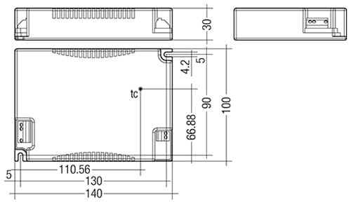 LCI 100W 1400mA TEC C - LED Driver per moduli LED, versione dipendente ad uscitta fissa. LED Driver a corrente costante. Corrente d'uscita 1.400 mA. Potenza d'uscita max. 100 W. Durata nominale di max. 50.000 h. Per apparecchi illuminanti in classe d'isolamento I e II. Protezione della temperatura in base alla EN 61347-2-13 C5e. 5 anni di garanzia. Copertura: policarbonato, bianco. Verniciatura per protezione aumentata dall'umidità. Tipo di protezione IP20. 140 x 100 x 30 mm.