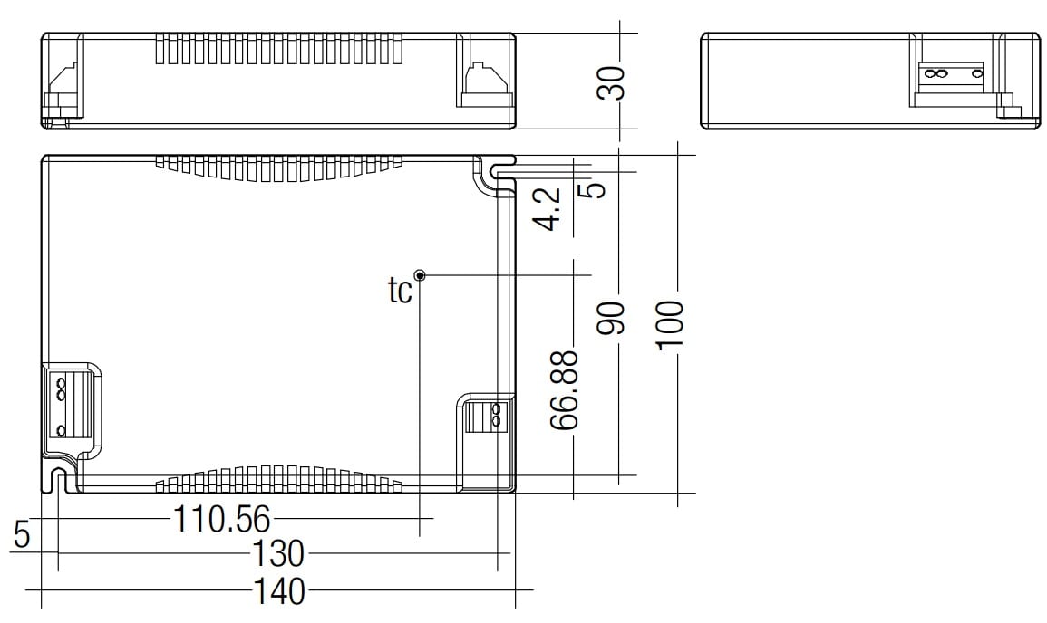 LED Driver per moduli LED, versione dipendente ad uscitta fissa. LED Driver a corrente costante. Corrente d'uscita 1.750mA. Potenza d'uscita max. 100 W. Durata nominale di max. 50.000 h. Per apparecchi illuminanti in classe d'isolamento I e II. Protezione della temperatura in base alla EN 61347-2-13 C5e. 5 anni di garanzia. Copertura: policarbonato, bianco. Verniciatura per protezione aumentata dall'umidità. Tipo di protezione IP20. Protezione contro la sovratemperatura. Protezione da sovraccarichi. Protezione contro il cortocircuito. Protezione in funzionamento senza carico. Protezione contro tensioni burst fino a 2 kV. Protezione contro tensioni surge fino a 2 kV (tra L e N). Protezione contro tensioni surge fino a 4 kV (tra L/N e terra).