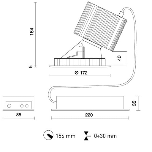 Installazione: Incasso a Soffitto, foro incasso: Foro incasso diam.156 mm. Spessore controsoffitto 1-30 mm, fissaggio: Con staffe regolabili in dotazione, corpo / struttura: Anello in pressofusione di alluminio, verniciatura: Verniciatura per interni in polveri epossidiche colore: Bianco, riflettore ottica: Riflettore in policarbonato lucidato, vetro / schermo: Vetro temprato chiaro, pressacavo: Fermacavo in nylon 66, alimentatore: alimentatore remoto per diodi LED, uscita stabilizzata 700mA dc, tensione: 220-240V 50/60Hz, fascio luminoso: Asimmetrico, classe isolamento: Classe 1. Power LED 25w 3190lm 3000k CRI 80.