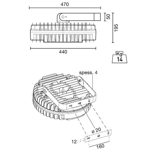 SIDE S.P.A. - SDEE6009-LBN-P HIGH BAY WALL 92W 600mA 840 EL. - E6009-LBN-P