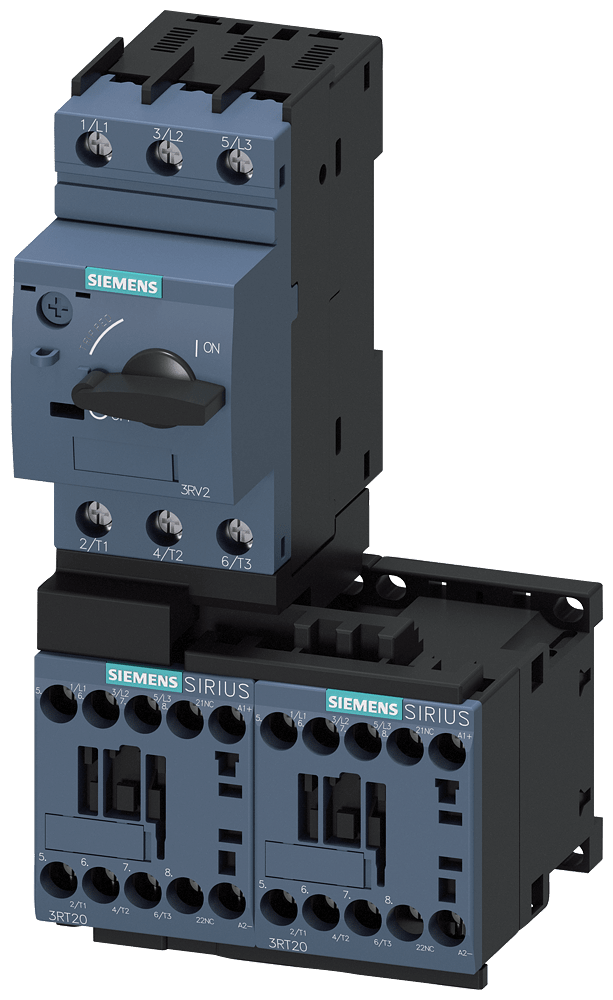 partenza senza fusibili, funzionamento con inversione AC 400 V, grandezza costruttiva S00 2,80 ... 4,00 A DC 24 V morsetti a vite per montaggio su guida DIN (conformemente anche al tipo di coordinamento 1) tipo di coordinamento 2, Iq = 150 kA 1 NC (contattore) Avviatore invertitore SIRIUS 3RA22 per la protezione e lavviamento di motori. Lavviatore invertitore 3RA22 è una combinazione testata e premontata in fabbrica di un interruttore automatico 3RV2 e due contattori 3RT2, che sono già interamente cablati e collegati meccanicamente ed elettricamente. Sono apparecchi tropicalizzati, con omologazioni internazionali (ad es. IEC e UL/CSA) e IE3/IE4 ready. Le partenze 3RA2 sono fornibili con comando AC e DC nelle grandezze costruttive S00, S0 e S2 con campi di regolazione da 0,14 a 65 A. Esse sono offerte con morsetti a vite o a molla per il montaggio su guida DIN, fissaggio a vite e montaggio su sbarra collettrice con interasse di 60 mm. Noi offriamo inoltre oltre 40 000 ulteriori combinazioni testate di singoli apparecchi per la protezione, il comando e lavvio nelle applicazioni più svariate fino a 630 A. Tutti gli accessori degli interruttori automatici 3RV2 e dei contattori 3RT2 sono unificati per tutte le grandezze costruttive e possono essere impiegati anche per le partenze. Il sistema di alimentazione opzionale SIRIUS 3RV29 (per S00 e S0) riduce notevolmente lonere di cablaggio. Le partenze 3RA22 sostituiscono la comprovata serie costruttiva 3RA12. Semplice, efficiente, sempre attuale - il sistema modulare SIRIUS.
