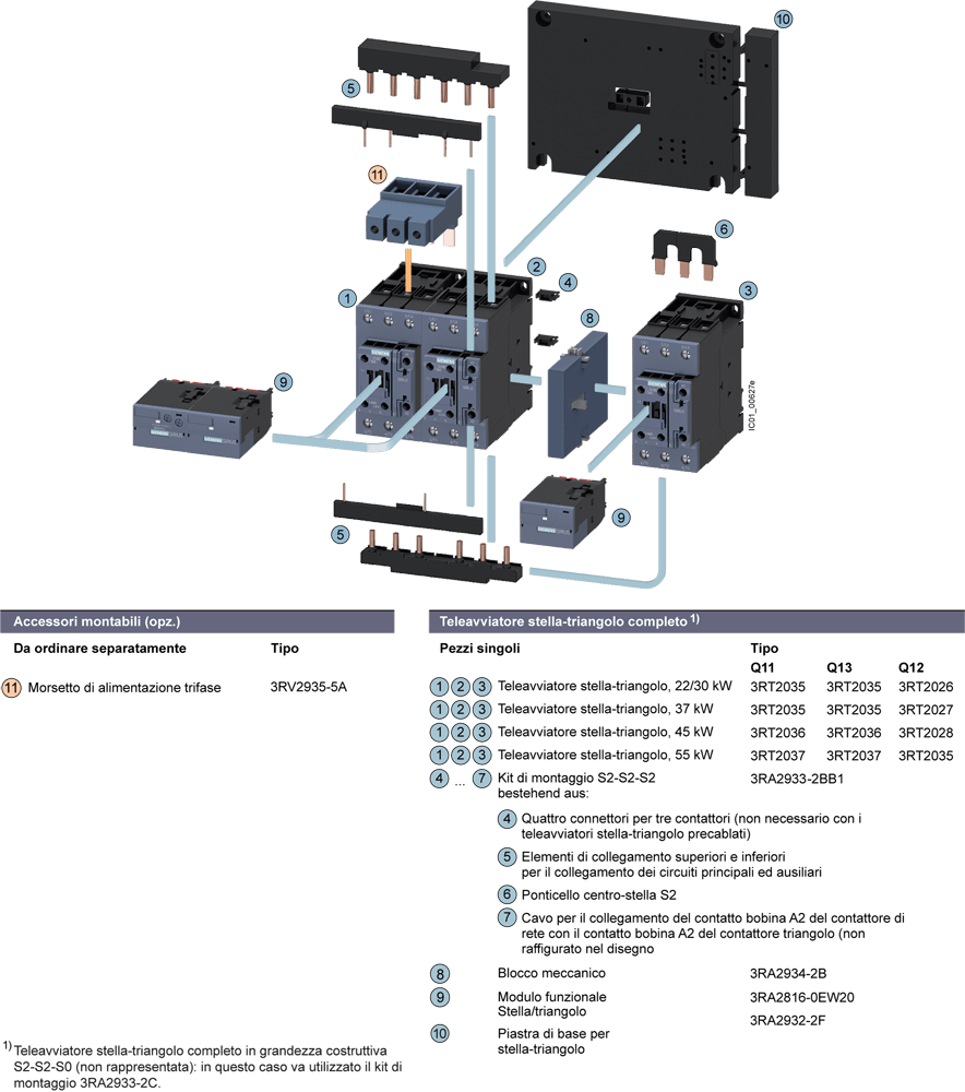 combinazione stella-triangolo AC-3, 55 kW/400 V,AC/DC 24-33 V a 3 poli, grandezza costruttiva S2 morsetti a vite interblocco elettrico e meccanico , 3 NO + 3 NC integrato Teleavviatore stella-triangolo SIRIUS 3RA24 per lavviamento graduale di motori asincroni trifase. Il teleavviatore stella-triangolo 3RA24 è una combinazione testata e premontata in fabbrica di tre contattori 3RT2, che sono già interamente cablati e collegati meccanicamente ed elettricamente. Il modulo funzionale incorporato con logica di comando integrata e regolazione del tempo sostituisce lintero cablaggio nel circuito di comando. Sono apparecchi tropicalizzati, con omologazioni internazionali (ad es. IEC e UL/CSA) e IE3/IE4 ready. I teleavviatori stella-triangolo 3RA24 nelle grandezze costruttive da S00 a S3 sono fornibili con comando AC e DC. Essi sono offerti con morsetti a vite o a molla per il montaggio su guida DIN o il fissaggio a vite. In più sono fornibili varianti per il collegamento a IO-Link o AS-Interface. Tutti gli accessori dei contattori 3RT2 sono unificati per tutte le grandezze costruttive e possono essere impiegati anche per le combinazioni di contattori. I teleavviatori stella-triangolo 3RA24 sostituiscono la comprovata serie costruttiva 3RA14. Semplice, efficiente, sempre attuale - il sistema modulare SIRIUS.