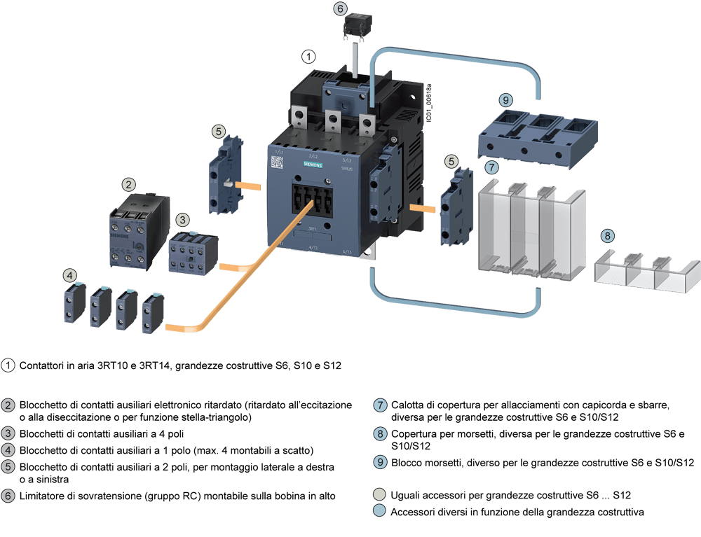 blocchetto di contatti ausiliari sul lato frontale, 1 NO, morsetti a vite, per contattori 3RT1 contatto ausiliario SIRIUS 3RH19 per lampliamento dei contatti ausiliari nel circuito di comando. Questo blocchetto di contatti ausiliari 3RH19 può essere montato senza attrezzi sui contattori 3RT1 e sui contattori ausiliari 3RH1 delle grandezze costruttive da S0 a S12. I blocchetti di contatti ausiliari 3RH19/3RH29 sono fornibili come varianti per il montaggio frontale o laterale, con fino a quattro contatti NO con commutazione istantanea o fino a due contatti NO e NC anticipati. I blocchetti di contattiausiliari possono essere in esecuzione con elementi di contatto a guida forzata in contattori ausiliari 3RH o anche come contatti speculari in contattori di potenza 3RT. Essi sono sempre fornibili con morsetti a vite e morsetti a molla. Semplice, efficiente, sempre attuale - il sistema modulare SIRIUS.