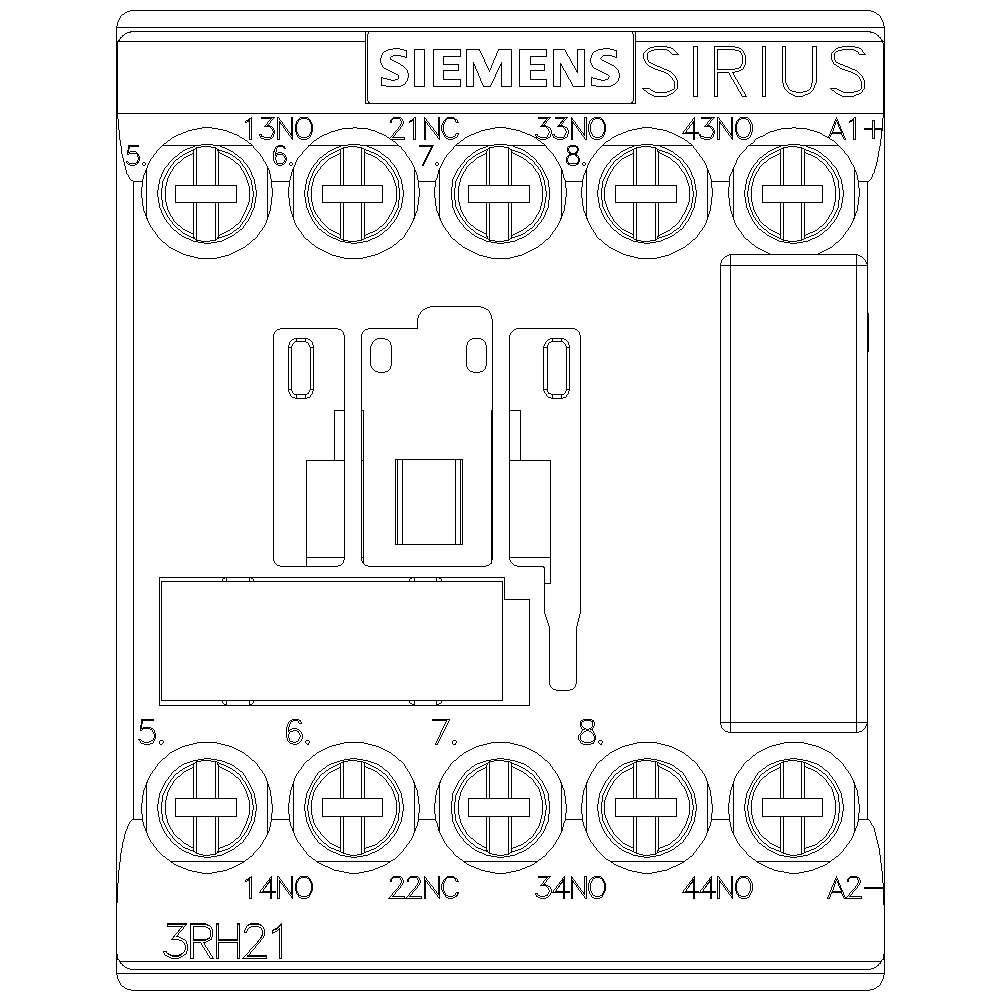 contattore ausiliario dinterfaccia, 3 NO + 1 NC, DC 24 V, 0,85 ... 1,85*Us, con varistore applicato, morsetti a vite, grandezza costruttiva S00 Contattore ausiliario dinterfaccia SIRIUS 3RH2 per la commutazione dei segnali di comando nel circuito di comando con possibilità di collegamento diretto ad apparecchiature di comando elettroniche. I contattori ausiliari dinterfaccia SIRIUS 3RH2 sono dotati di designazioni dei morsetti conformi alla normativa e di una tecnica di collegamento rapida e affidabile. Grazie alla moltiplicazione delle uscite è possibile la commutazione contemporanea di più circuiti ausiliari. I contatti sono fornibili con guida forzata per applicazioni di safety anche come variante SUVA. I contattori ausiliari dinterfaccia sono tropicalizzati, presentano una grande sicurezza di contatto e sono adatti allimpiego in tutto il mondo grazie alle corrispondenti omologazioni (ad es. IEC e UL/CSA). Essi sono disponibili con comando in AC o DC, con morsetti a vite o a molla. I numerosi accessori per i contattori 3RT2 nelle grandezze costruttive da S00 a S3 possono essere impiegati anche per i contattori ausiliari dinterfaccia 3RH2. I contattori ausiliari dinterfaccia 3RH2 sostituiscono la comprovata serie costruttiva 3RH1. Semplice, efficiente,sempre attuale - il sistema modulare SIRIUS.