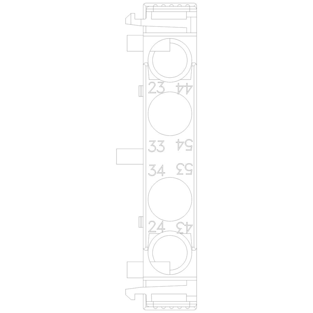 blocchetto di contatti ausiliari, laterale, 2 NO, a sinistra: 43/44, 53/54, a destra: 23/24, 33/34, via di corrente: 1 NO, 1 NO, morsetti a vite, per contattori 3RT2.1 contatto ausiliario SIRIUS 3RH29 per lampliamento dei contatti ausiliari nel circuito di comando. I blocchetti di contatti ausiliari montabili lateralmente 3RH29 possono essere montati senza attrezzi indipendentemente dalla grandezza costruttiva sui contattori 3RT2. I blocchetti di contatti ausiliari 3RH19/3RH29 sono fornibili come varianti per il montaggio frontale o laterale, con fino a quattro contatti NO con commutazione istantanea o fino a due contatti NO e NC anticipati. I blocchetti di contatti ausiliari possono essere in esecuzione con elementi di contatto a guida forzata in contattori ausiliari 3RH o anche come contatti speculari in contattori di potenza 3RT. Essi sono sempre fornibili con morsetti a vite e morsetti a molla. Semplice, efficiente, sempre attuale - il sistema modulare SIRIUS.