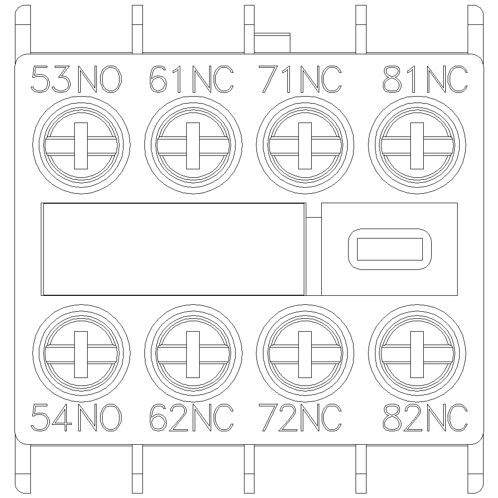 blocchetto di contatti ausiliari, sul lato frontale, 1 NO + 3 NC, 53/54, 61/62, 71/72, 81/82, via di corrente: 1 NO, 1 NC, 1 NC, 1 NC, morsetti a vite, con codifica fisica, solo con contattori ausiliari 3RH2140 e 3RH2440 combinabili (secondo EN 50011) contatto ausiliario SIRIUS 3RH29 per lampliamento dei contatti ausiliari nel circuito di comando. I blocchetti di contatti ausiliari frontali 3RH29 possono essere montati senza attrezzi indipendentemente dalla grandezza costruttiva sui contattori 3RT2 e suicontattori ausiliari 3RH2. I blocchetti di contatti ausiliari 3RH19/3RH29 sono fornibili come varianti per il montaggio frontale o laterale, con fino a quattro contatti NO con commutazione istantanea o fino a due contatti NO e NC anticipati. I blocchettidi contatti ausiliari possono essere in esecuzione con elementi di contatto a guida forzata in contattori ausiliari 3RH o anche come contatti speculari in contattori di potenza 3RT. Essi sono sempre fornibili con morsetti a vite e morsetti a molla. Semplice, efficiente, sempre attuale - il sistema modulare SIRIUS.