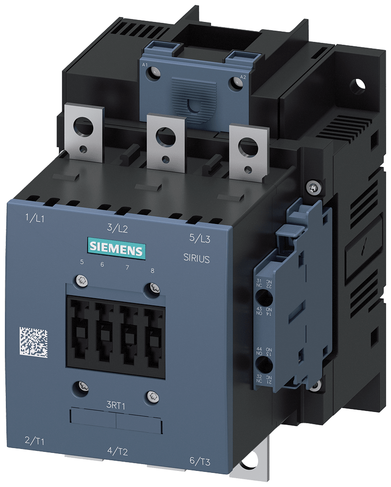 contattore di potenza, AC-3e/AC-3 185 A, 90 kW / 400 V AC (50 ... 60 Hz) / DC Uc: 23 ... 26 V a 3 poli, contatti ausiliari 2 NO + 2 NC azionamento: convenzionale circuito princ.: sbarra circuito di comando e circuito ausiliario: attacco a vite Contattoredi potenza SIRIUS 3RT1 per il comando di motori. I contattori 3RT1 sono parte integrante del sistema componibile SIRIUS con i suoi prodotti perfettamente accordati tra di loro. Essi convincono per la grande potenza in una forma costruttiva compatta e lelevata affidabilità di contatto. Sono combinabili in diversi modi con altri componenti nella partenza. I contattori offrono per ogni applicazione il collegamento ottimale al controllore (diretto o tramite ingresso di PLC). I blocchetti di contatti ausiliari integrati riducono la complessità del montaggio. I contattori 3RT1 sono tropicalizzati, con omologazioni internazionali (ad es. IEC e UL/CSA) e IE3/IE4ready. Essi sono disponibili in diverse grandezze costruttive e con un ampio campo di potenza. Essi possono essere comandati in AC o DC, alcune varianti hanno un ampio campo di tensione e un ingresso di comando da PLC. Nel circuito principale è possibile collegare gli apparecchi tramite sbarre o morsetti serracavo. Per il circuito ausiliario e di comando essi sono disponibili anche con morsetti a molla per un collegamento rapido, esente da manutenzione e resistente a urti. Per questi contattori sono disponibili numerosi accessori, come ad es. kit di cablaggio, che riducono notevolmente lonere di cablaggio, blocchetti di contatti ausiliari o calotte coprimorsetti. Semplice, efficiente, sempre attuale - il sistema modulare SIRIUS.