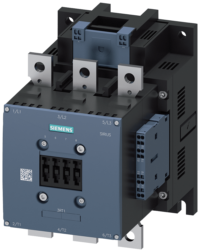 contattore di potenza, AC-3e/AC-3 225 A, 110 kW / 400 V AC (50 ... 60 Hz) / DC Uc: 220 ... 240 V a 3 poli, contatti ausiliari 2 NO + 2 NC azionamento: convenzionale circuito princ.: sbarra circuito di comando e circuito ausiliario: morsetti a molla Contattore di potenza SIRIUS 3RT1 per il comando di motori. I contattori 3RT1 sono parte integrante del sistema componibile SIRIUS con i suoi prodotti perfettamente accordati tra di loro. Essi convincono per la grande potenza in una forma costruttiva compatta e lelevata affidabilità di contatto. Sono combinabili in diversi modi con altri componenti nella partenza. I contattori offrono per ogni applicazione il collegamento ottimale al controllore (diretto o tramite ingresso di PLC). I blocchetti di contatti ausiliari integrati riducono la complessità del montaggio. I contattori 3RT1 sono tropicalizzati, con omologazioni internazionali (ad es. IEC e UL/CSA) e IE3/IE4ready. Essi sono disponibili in diverse grandezze costruttive e con un ampio campo di potenza. Essi possono essere comandati in AC o DC, alcune varianti hanno un ampio campo di tensione e un ingresso di comando da PLC. Nel circuito principale è possibile collegare gli apparecchi tramite sbarre o morsetti serracavo. Per il circuito ausiliario e di comando essi sono disponibili anche con morsetti a molla per un collegamento rapido, esente da manutenzione e resistente a urti. Per questi contattori sono disponibili numerosi accessori, come ad es. kit di cablaggio, che riducono notevolmente lonere di cablaggio, blocchetti di contatti ausiliari o calotte coprimorsetti. Semplice, efficiente, sempre attuale - il sistema modulare SIRIUS.