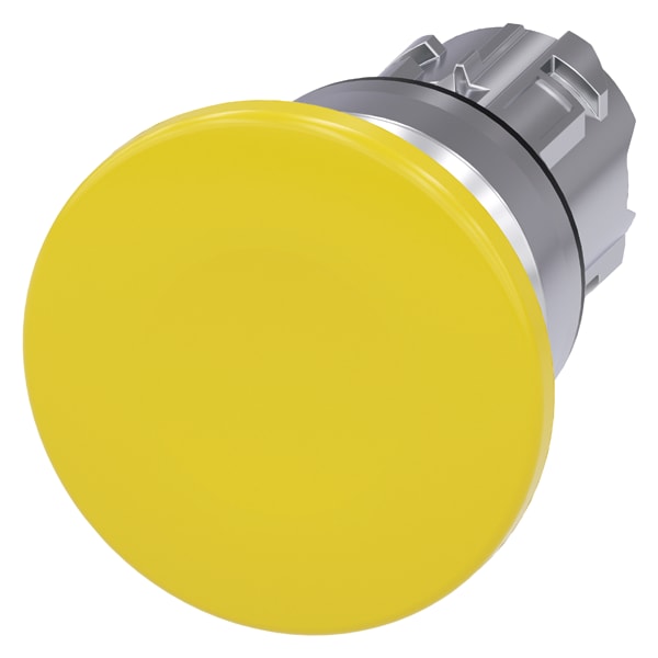 pulsante a fungo, 22 mm, rotondo, in metallo, lucido, giallo, 40 mm, ad impulso Pulsante a fungo SIRIUS ACT con operatore grande per lazionamento comodo con tutta la mano. Siemens offre, sotto il nome commerciale SIRIUS ACT, un portfolio esclusivo di dispositivi di comando e segnalazione con omologazioni di prodotto per il mercato mondiale in tre moderne serie di design in robusto metallo puro e plastica pregiata.Linnovativo concetto di innesto a scatto semplifica talmente il montaggio che per eseguirlo basta una sola mano e non servono attrezzi speciali. Per i fori di montaggio sono sufficienti semplici fori non scanalati, essendo già integrata una protezione antirotazione al 100 %.Grazie al grado di protezione elevato i robusti apparecchi sono adatti allimpiego industriale e in ambiente esterno. È persino possibile la pulizia con getto ad alta pressione. Né polvere, né oli, né liscivia possono comprometterne il funzionamento affidabile.Oltre che con il cablaggio standard, gli apparecchi possono essere collegati al controllore anche tramite PROFINET, AS-Interface oppure IO-Link. Potete così ridurre il vostro onere di cablaggio, minimizzare le fonti di errore e ottenere maggiore flessibilità.Il configuratore online grafico supporta in modo confortevole la scelta e lordinazione di singoli apparecchi, pulsantiere e iscrizioni. È disponibile una documentazione completa (ad es. manuale, dati 3D, schema di collegamento). Esecuzioni fornibili: diametro del fungo di 30/40/60 mm, più colori, luminoso/non luminoso, comando permanente/ad impulso, sblocco a trazione/a rotazione. Avvertenza: Apparecchio singolo, supporti e moduli devono essere ordinati separatamente. SIRIUS ACT - Performance in Action nel comando e nella segnalazione. Semplici da montare, altamente performanti, semplicemente perfetti.