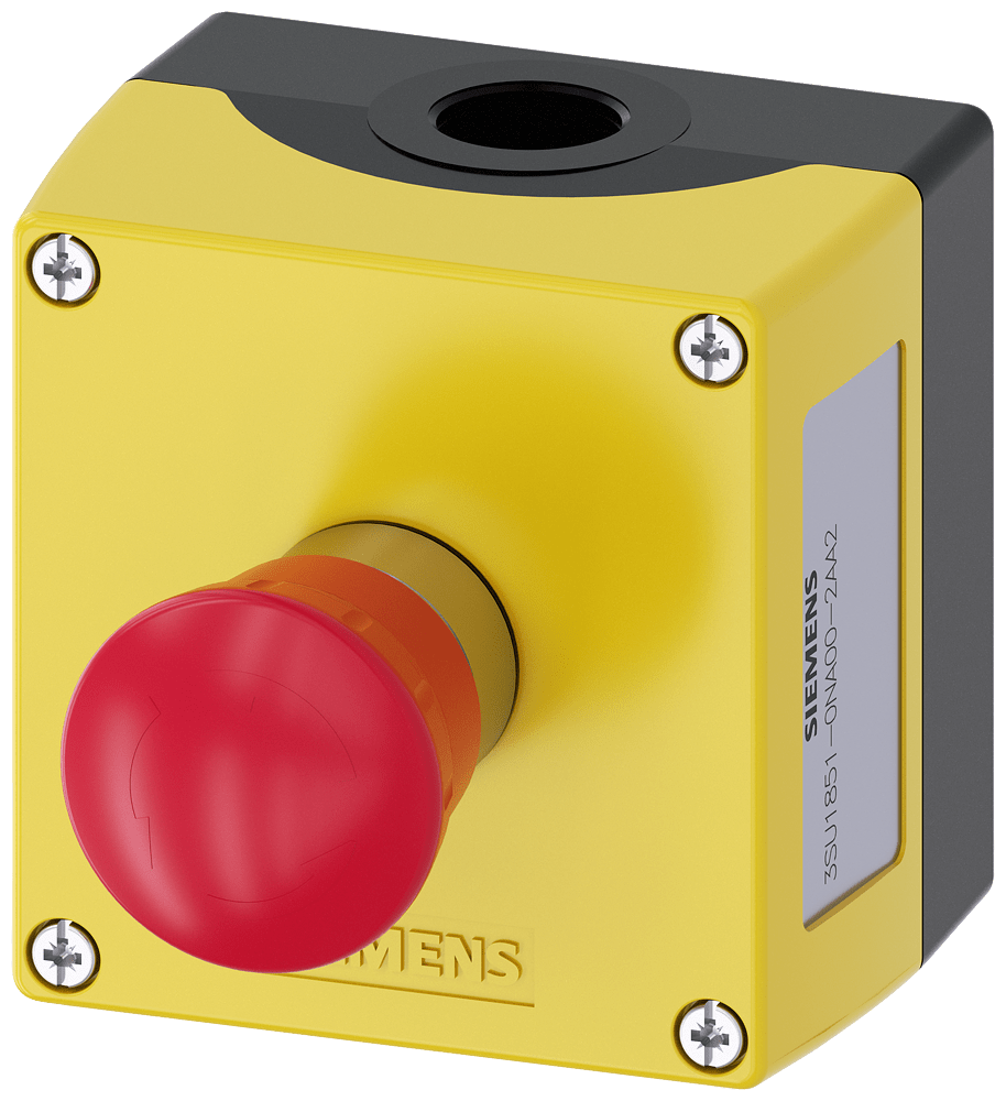 Pulsantiera per dispositivi di comando, 22 mm, rotondo, materiale della custodia metallo, parte superiore della custodia gialla, 1 punto di comando in metallo, A=pulsante a fungo di arresto di emergenza rosso, 40 mm, con sblocco a rotazione, punto di comando centrale, 1 NC, morsetto a vite, fissaggio sulla base di fondo, in alto e in basso rispettivamente 1xM20 Custodie SIRIUS ACT per il montaggio dei dispositivi di comando e segnalazione da 22,5 mm in caso di installazione spazialmente separata di unitàdi comando e quadri elettrici. Siemens offre, sotto il nome commerciale SIRIUS ACT, un portfolio esclusivo di dispositivi di comando e segnalazione con omologazioni di prodotto per il mercato mondiale in tre moderne serie di design in robusto metallo puro e plastica pregiata.Linnovativo concetto di innesto a scatto semplifica talmente il montaggio che per eseguirlo basta una sola mano e non servono attrezzi speciali. Per i fori di montaggio sono sufficienti semplici fori non scanalati, essendo già integrata una protezione antirotazione al 100 %.Grazie al grado di protezione elevato i robusti apparecchi sono adatti allimpiego industriale e in ambiente esterno. È persino possibile la pulizia con getto ad alta pressione. Né polvere, né oli, né liscivia possono comprometterne il funzionamento affidabile.Oltre che con il cablaggio standard, gli apparecchi possono essere collegati al controllore anche tramite PROFINET, AS-Interface oppure IO-Link. Potete così ridurre il vostro onere di cablaggio, minimizzare le fonti di errore e ottenere maggiore flessibilità.Il configuratore online grafico supporta in modo confortevole la scelta e lordinazione di singoli apparecchi, pulsantiere e iscrizioni. È disponibile una documentazione completa (ad es. manuale, dati 3D, schema di collegamento). Esecuzioni fornibili: giallo/grigio, plastica/metallo, 1-6 punti di comando, pulsantiera equipaggiabile/equipaggiata, a scelta con collegamento AS-Interface. SIRIUS ACT - Performance in Action nel comando e nella segnalazione. Semplici da montare, altamente performanti, semplicemente perfetti.