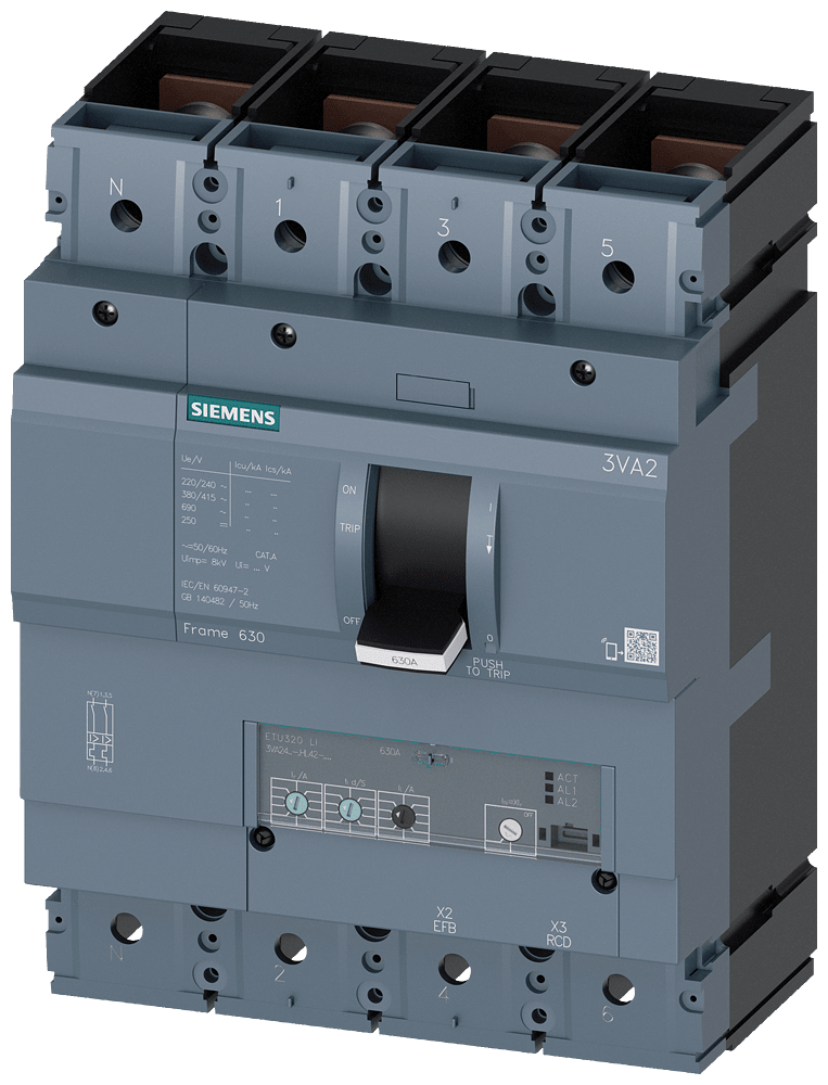 SIEMENS - SIE3VA24635HL420AA0 MCCB IEC FS630 630A 4P 55KA ETU3 LI - 3VA24635HL420AA0