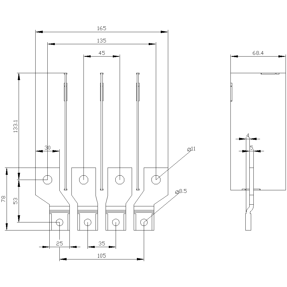 attacco a sbarra divaricato sul lato frontale 4 pezzi accessori per: 3VA20/21/22 Interruttori automatici scatolati SENTRON 3VA - un sistema. Per tutte le applicazioni.