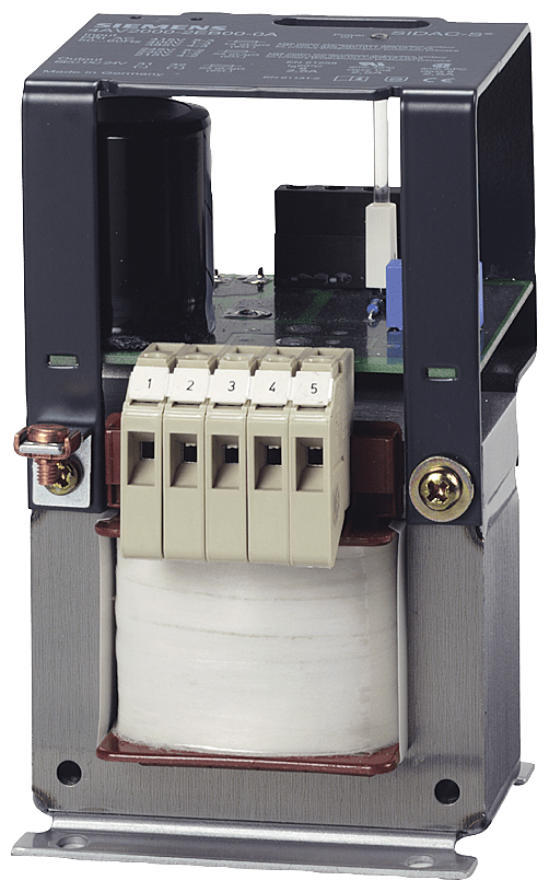 alimentazione; fasi:1; Pn(kW):0,12; Upri(V):400-230+/-15; Usec(V DC):24; Isec(A DC):5/6 (60/40 CEL); F(Hz): 50 ... 60; gruppo di collegamento/avvolgimento di schermatura: II0 /0; classe di protezione: I; TA/cl. di isolam:60 /B; W(%):5; IP00; collegamento: morsetti a vite/attacchi a spina piatta ; montaggio: con viti; EN 61558-2-6, EN 61131-2 >trasformatore di sicurezza< Gli alimentatori 4AV forniscono una tensione continua non regolata DC 24 V sulla base di trasformatori di sicurezza monofase o trifase con raddrizzatori collegati a valle e il filtraggio con condensatori secondo la norma EN 61131-2.