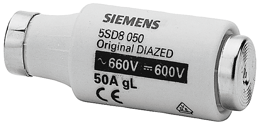 cartuccia fusibile DIAZED 690 V per protezione di cavi e conduttori classe di impiego gG grandezza DIII, E33, 50 A SENTRON 5SD8 . Dispositivi di protezione SENTRON - Una scelta sicura.