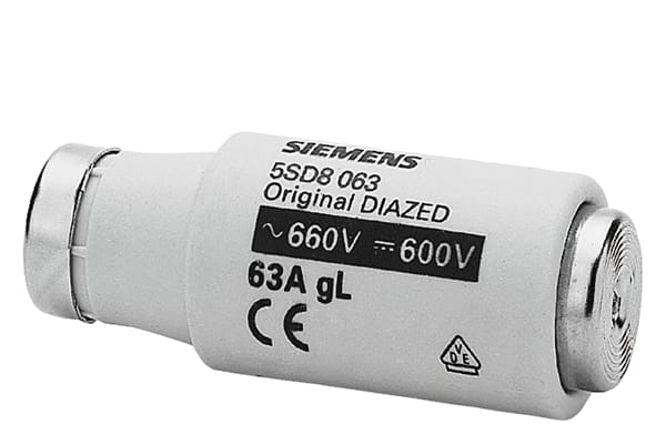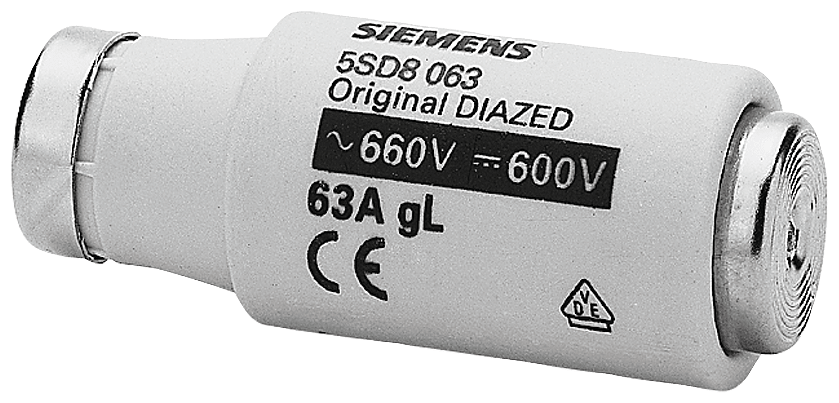 cartuccia fusibile DIAZED 690 V per protezione di cavi e conduttori classe di impiego gG grandezza DIII, E33, 63 A SENTRON 5SD8 . Dispositivi di protezione SENTRON - Una scelta sicura.