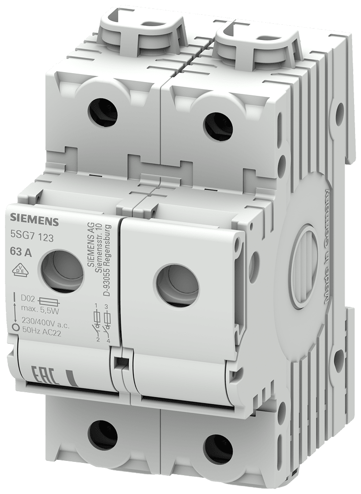 MINIZED, sezionatore sottocarico con fusibile, D02, a 2 poli, In: 63 , Un AC: 400 V senza inserto senza cartuccia fusibile SENTRON 5SG7 . Dispositivi di protezione SENTRON - Una scelta sicura.