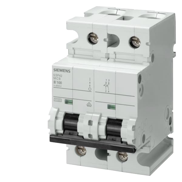 Interruttore magnetotermico 400V 10 kA, a 2 poli, B, 100A, P=70mm Interruttore magnetotermico SENTRON 5SP4 per una efficace protezione delle persone e degli impianti grazie alla disinserzione sicura in caso di sovraccarico e cortocircuito. Gli interruttori magnetotermici possono essere montati facilmente e offrono sicurezza affidabile durante linstallazione grazie alla protezione avvolgente e alla protezione contro i contatti accidentali come standard di serie. Inoltre, essi hanno anche un indicatore di posizione di manovra chiaramente visibile. Un codice Data Matrix sul lato frontale dellapparecchio fornisce in modo rapido e semplice tutte le informazioni sullinterruttore magnetotermico. Accessori unificati in ampia gamma semplici da montare e sostituibili in ogni momento. Semplicemente sicuri con i dispositivi di protezione SENTRON.
