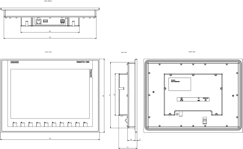SIEMENS - SIE6AV21232MB030AX0 SIMATIC HMI KTP1200 BASIC - 6AV21232MB030AX0