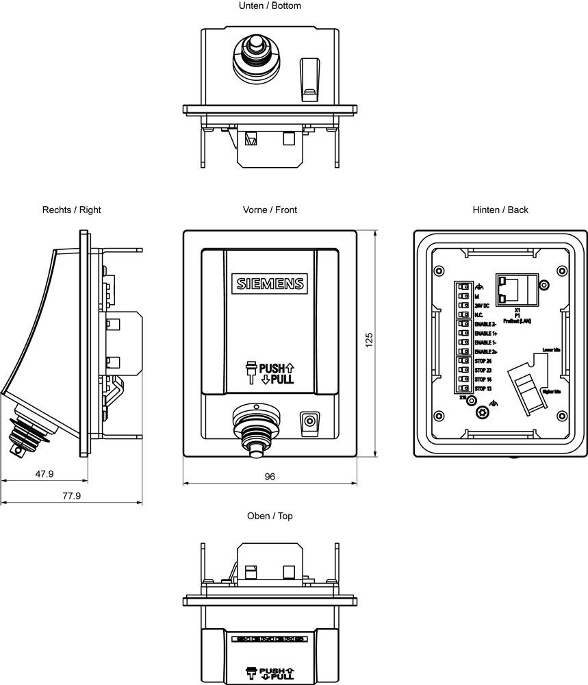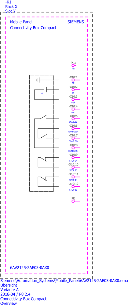 box di connessione SIMATIC HMI compatto per Mobile Panel, montaggio nel quadro elettrico, PROFINET e PROFISAFE, collegamento relè di sicurezza, identificazione del punto di connessione Connessioni dei Mobile Panel.