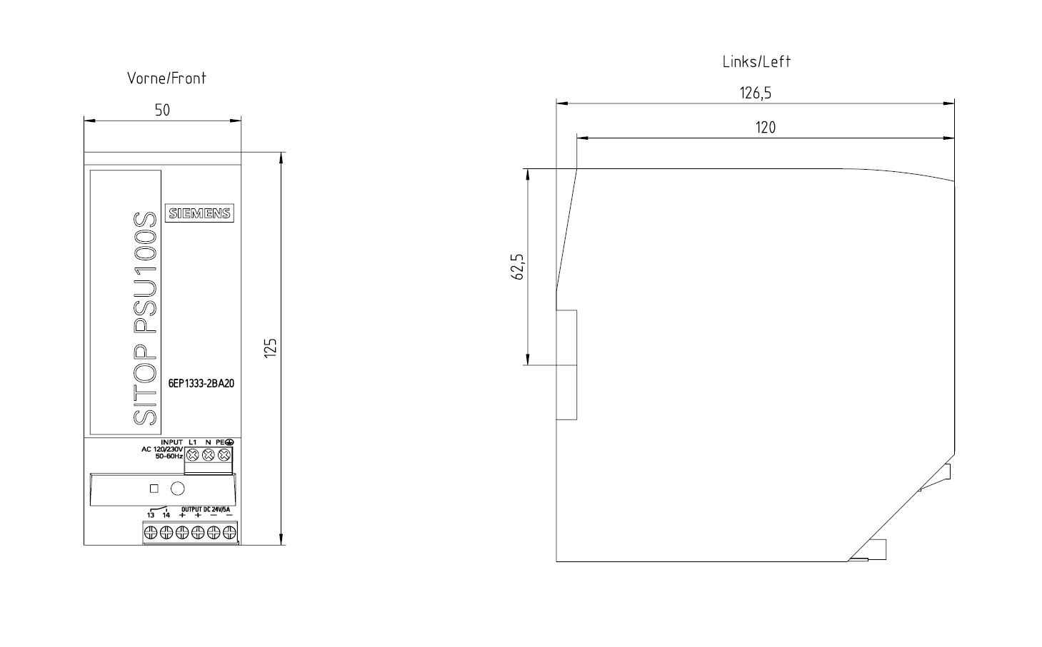 SIEMENS - SIE6EP13332BA20 SITOP PSU100S 24 V/5 A - 6EP13332BA20