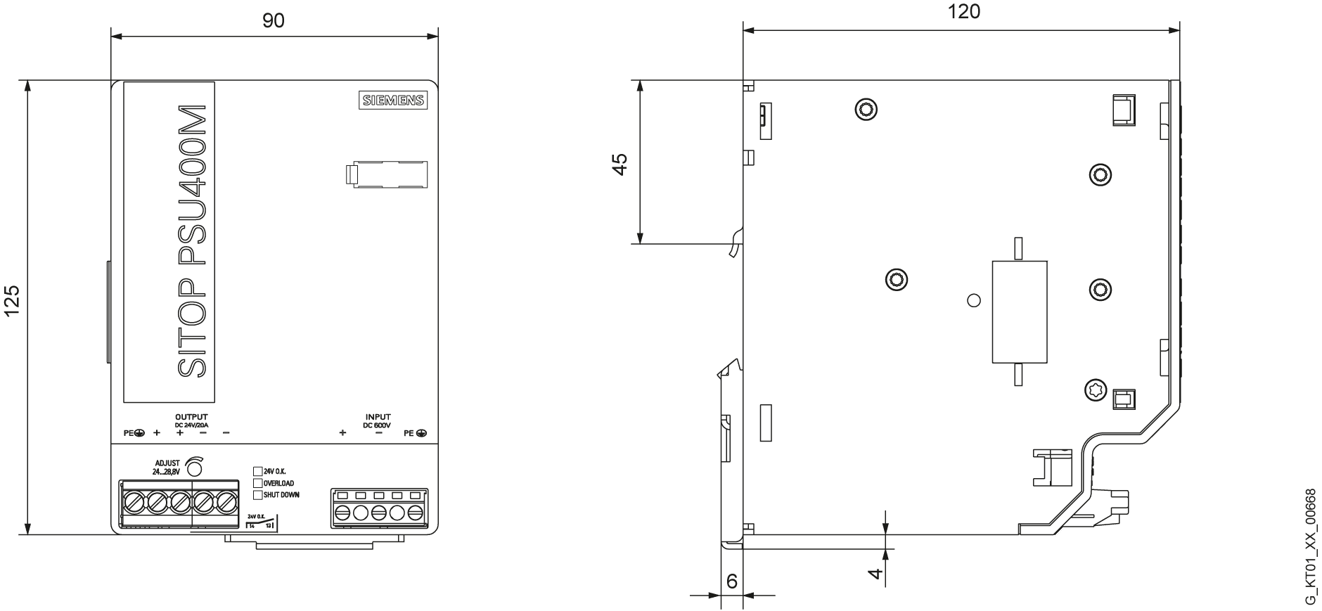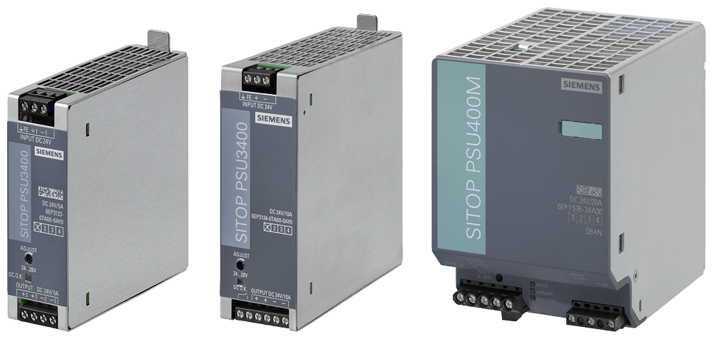 SITOP PSU400M 20 A convertitore DC/DC ingresso: DC 600 V uscita: DC 24 V/20 A Lalimentatore SITOP PSU400M con ingresso DC 600 V si presta allutilizzo come convertitore DC/DC efficiente per sistemi di azionamento e di batterie. Il convertitore DC/DC è caratterizzato da un ampio campo di ingresso e di temperatura, da un elevato rendimento, da una forma costruttiva sottile e da un Extra-Power del 50% per 5 s/min. Indipendentemente dal settore o dallesigenza, Siemens offre alimentatori affidabili ed efficienti per ogni impianto.