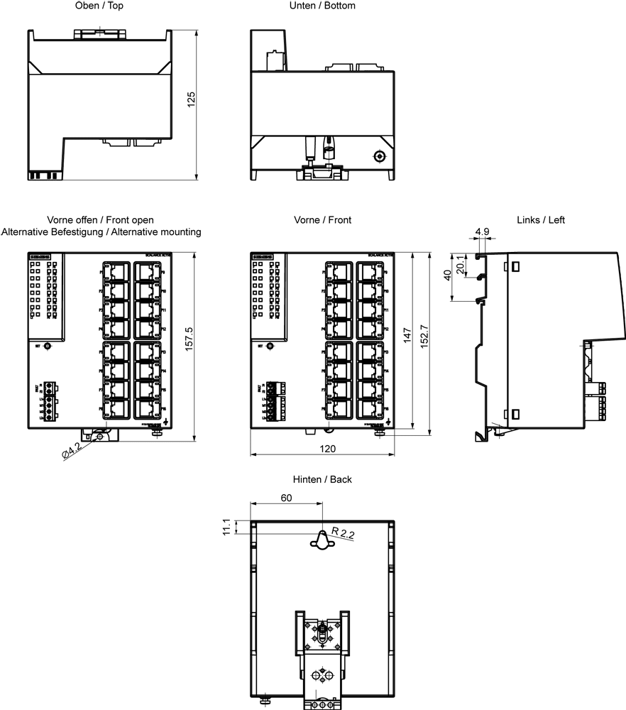 SCALANCE XC116, IE unmanaged switch, 16x porte 10/100 Mbit/s RJ45, diagnostica LED, contatto di segnalazione errore con tasto SET, ridondanza della alimentazione di tensione manuale disponibile come download . SCALANCE XC116 unmanaged switch compatto, 16x RJ45 da 10/100 Mbit/s per la semplice interconnessione di macchine in rete. Economico, semplice e versatile: uno SCALANCE XC116 è lo switch ideale per garantire una infrastruttura di rete affidabile e robusta. Con SCALANCE XC116 si trova sempre il giusto unmanaged switch per i collegamenti di reti elettriche e ottiche. Grazie allhardware potente e alle funzioni avanzate, assicura lintegrazione diretta e la scalabilità per qualsiasi ambiente di rete. Con la nuova serie di unmanaged switch SCALANCE XCM-100 è possibile anche realizzare applicazioni Power over Ethernet. I nostri unmanaged switch e Media-Converter sono perfetti per limpiego in vicinanza delle macchine nelle reti industriali e resistono anche alle condizioni ambientali gravose.