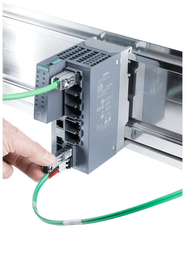 SCALANCE XC206-2SFP manageable IE Switch di Layer 2; certificato IEC 62443-4-2; 6x porte RJ45 da 10/100 Mbit/s; 2x SFP da 100/1000 Mbit/s; 1x porta console; LED di diagnostica; alimentazione di tensione ridondante; campo di temp.-40 °C...+70 °C; montaggio: guida DIN/profilata S7/a parete funzioni di ridondanza Office Features (RSTP, VLAN,...); PROFINET IO Device; conforme a Ethernet/IP; slot C-PLUG; SCALANCE XC206-2SFP managed, switch compatto di Layer 2, 6x RJ45 da 10/100 Mbit/s, 2x SFP da 100/1000 Mbit/s per Industrial Ethernet (PROFINET ed EtherNet/IP). Indicato per numerose applicazioni: Lo SCALANCE XC206-2SFP offre unampia varietà di switch Ethernet altamente performanti in diverse varianti: dagli switch Gigabit agli switch robusti per i requisiti dellautomazione discreta e di processo. I potenti switch Gigabit SCALANCE XC206-2SFP sono stati sviluppati per rispondere ai difficili requisiti delle reti negli ambienti industriali. Grazie allhardware potente e alle funzioni avanzate, assicurano uninfrastruttura di rete affidabile e scalabile per qualsiasi applicazione. Realizzazione semplice e affidabile di molte applicazioni industriali.