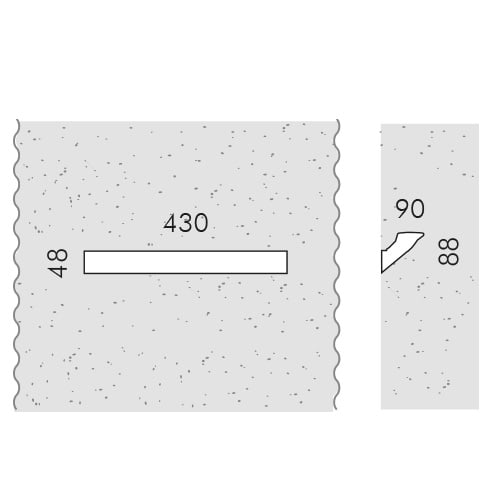 GHOST LINEARE L 430. CIRCUITO LED 3000K 230V 764lm CRI 80. Flusso luminoso apparecchio: 532lm. Potenza totale assorbita: 7.5W. Efficienza luminosa apparecchio: 71lm/W. Trasformatore elettronico 220÷230V 50-60Hz. Apparecchio da installazione a parete. Grado di protezione IP 65. Ghost è un incavo luminoso che si ottiene tramite l'utilizzo di un'apposita cassaforma da ancorare al cassero prima del getto in calcestruzzo. L'articolo si compone di due elementi: la cassaforma e il corpo illuminante. La cassaforma in allumino è costituita a sua volta da due parti complementari: - una dima , che da forma all'incavo, e viene estratta insieme al cassero dopo aver completato il getto e aver rimosso le viti; - un involucro che rimane annegato all'interno del getto e che successivamente ospiterà il corpo illuminante. (La cassaforma viene fornita completa di tiranti, sistema di bloccaggio e adesivo da apporre sul cassero per definire il corretto posizionamento dell'incavo finale). Il corpo illuminante in alluminio pressofuso si ancora, tramite apposite viti, all'interno dell'involucro e rimane completamente nascosto nell'incavo. Resistenza meccanica IK 06. Diffusore in vetro temprato e puntinato. Sorgente luminosa, con posizione lampada fissa. Cablato con 6m di cavo H05RN-F. Classe di isolamento: CLASSE II. Colori disponibili: Cemento utilizzato per il getto. Peso: 2.52 Kg. Apparecchi forniti completi di circuito L.E.D.