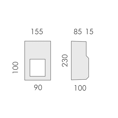 Microghost Quadrato per materiali da costruzione in opera da intonacare - Apparecchio da installazione a parete. Grado di protezione IP 65. Microghost è un incavo luminoso che si ottiene tramite l’utilizzo di un’apposita cassaforma da ancorare al casseroprima del getto in calcestruzzo. L’articolo si compone di due elementi: la cassaforma e il corpo illuminante. La cassaforma in allumino è costituita a sua volta da due parti complementari: - una dima , che da forma all'incavo, e viene estratta insieme alcassero dopo aver completato il getto e aver rimosso le viti; - un involucro che rimane annegato all'interno del getto e che successivamente ospiterà il corpo illuminante. (La cassaforma viene fornita completa di tiranti, sistema di bloccaggio e adesivo da apporre sul cassero per definire il corretto posizionamento dell'incavo finale). Il corpo illuminante in alluminio pressofuso si ancora, tramite apposite viti, all'interno dell'involucro e rimane completamente nascosto nell'incavo. Resistenza meccanicaIK 06. Diffusore in vetro temprato e puntinato. Sorgente luminosa, con posizione lampada fissa. Blocco Polistirene AE D35 con cassaforma + Corpo illuminante con MID-POWER LED bianco 4W 320lm 3000K CRI80 - 24V. Necessita di alimentatore remoto 230V/24V CC. Finitura: Cemento.