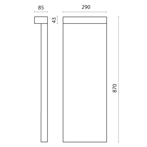LOOK Paletto 290 mm - Struttura in alluminio pressofuso EN AB-47100, struttura per paletto in alluminio estruso EN AW-6060 ad elevata resistenza all’ossidazione. Diffusore in vetro temprato. Viti a brugola in acciaio INOX A4. Alimentatore elettronico 220V/240V 50/60Hz. Apparecchio precablato con singolo cavo in neoprene con pressacavo. Emissione singola. LED 24W 4000K 2009lm CRI 90 230V. Colore grigio alluminio. Dimensioni: 870x290x85mm.