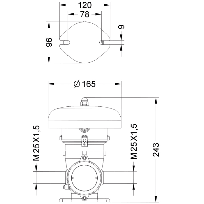 Suoneria antideflagrante per impianto in aree del Gruppo II con atmosfera esplosiva per zona 1, 2. Progettata e costruita rispettando i più alti standard qualitativi. II 2G Ex d e IIC T6 . Omologazione: CESI 10 ATEX 042 X . Corpo in lega di alluminio esente da rame. Verniciatura poliestere RAL 3020. Intensità del suono: max. 100 dB(A)1m. Protezione: IP 66. Temperatura massima superficiale: T6