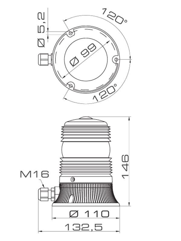 Luce di medie dimensioni progettata per applicazioni industriali. MINIFLASH offre la massima versatilità oltre che performance ottiche eccellenti. Versione con base standard e luce fissa (lampadina non fornita). Cupola in policarbonato autoestinguente adalta resistenza agli impatti. Base autoestinguente in poliammide caricato fibra vetro ad alta resistenza agli impatti con pressacavo M16. Fissaggio tramite viteria standard non fornita. Lampadina a filamento da 25W con attacco BA 15d e cupola a lente di Fresnel consentono di magnificare il fascio luminoso fisso.