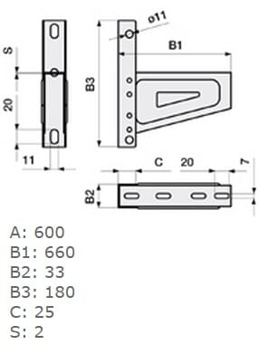 Adatto per larghezza sistema di supporto cavi - 600...600 mm