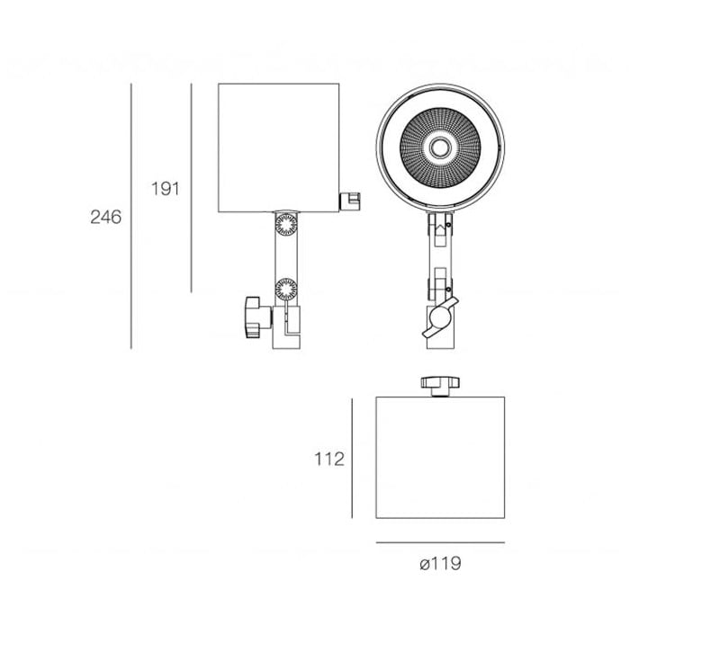 Proiettore professionale orientabile a LED per installazione a parete o su cornicione. Corpo, anello frontale e snodi in alluminio verniciato a polvere nelle finiture bianco fiorentino. Dissipatore in alluminio estruso anodizzato nero. Sistema di dissipazione passiva. Camera ottica in policarbonato nero. Ottica - LED ad alta emissione bianco caldo disponibili con Ra97. Ottica di precisione a sfaccettature convesse in policarbonato metallizzato disponibile nelle versione Flood. Trattamento “Scratch Proof Formula” antigraffio ad alta specularità. Completa di schermo di protezione in policarbonato. Orientabilità del corpo ottico di +/- 165° sul piano orizzontale e di +/-180° su quello verticale con bloccaggio micrometrico del puntamento tramite un unico pomello per i due gradi di libertà. Predisposto per il montaggio di accessori. Braccio snodato orientabile +/-180° sul piano verticale disponibile in due lunghezze. Riferimenti graduati in corrispondenza dei giunti di snodo. Il braccio deve essere completato con sistema di installazione dedicato disponibile a scelta tra: base per montaggio in superficie, base carter con driver integrato, canale di installazione. Da completare con driver disponibile nelle versioni elettronica base. LED 45W 4021Lm 3000K47°.