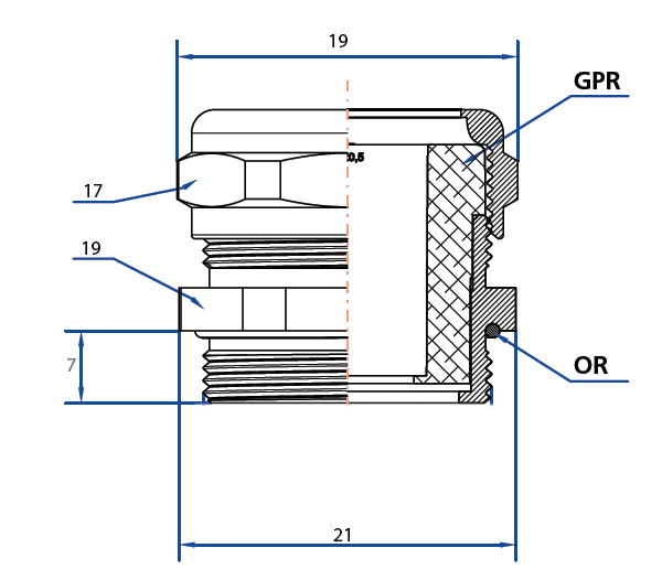 Lunghezza della filettatura - 7 mm