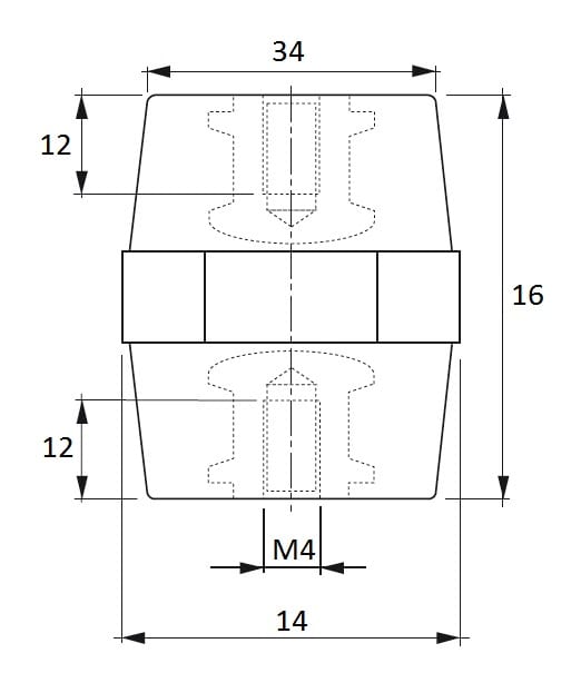 ISOLATORI E PORTASBARRE Altezza: 16 Tipo: Esagonale Inserto: M4