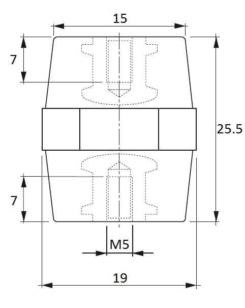 ISOLATORI E PORTASBARRE Altezza: 25,5 Tipo: Esagonale Inserto: M5