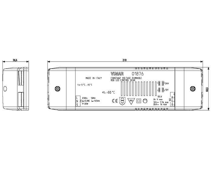 VIMAR S.P.A. - VIW01876 ALIMENTATORE 230V 50HZ LED RGB 12/24VDC - 01876