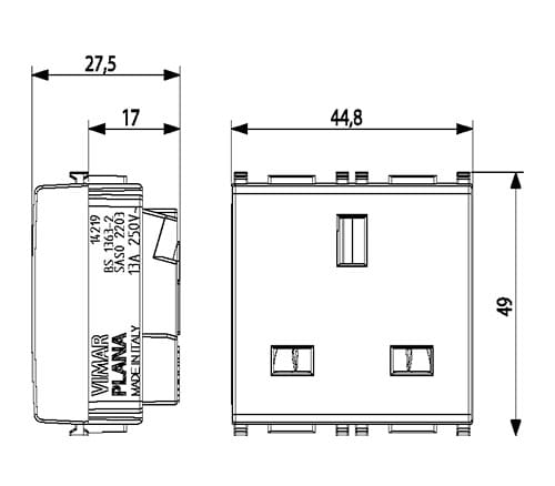 VIMAR S.P.A. - VIW14219 PRESA 2P+T 13A INGLESE BIANCO - 14219