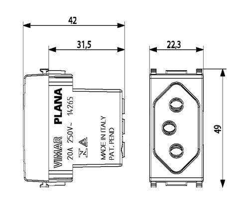 VIMAR S.P.A. - VIW14265 PRESA SICURY 2P+T 20A BRASILIANO BIANCO - 14265