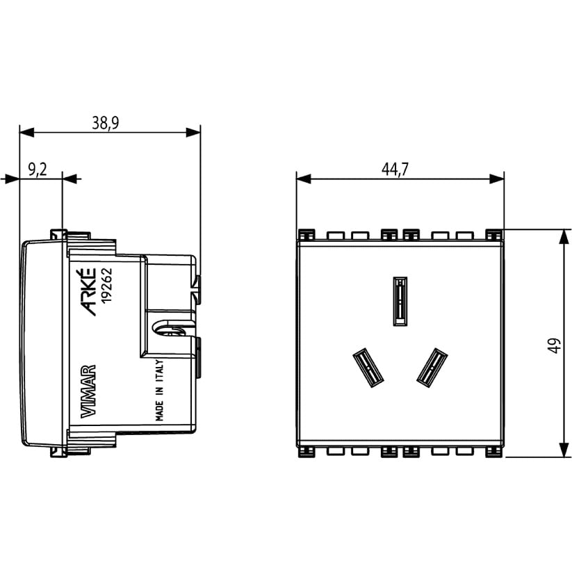 VIMAR S.P.A. - VIW19262 PRESA SICURY 2P+T 15A AUSTRALIA GRIGIO - 19262