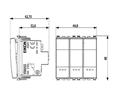 Tre deviatori indipendenti 1P 20 AX 250 V~, bianco - 2 moduli