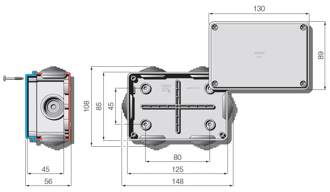 VIMAR S.P.A. - VIWV55105 SCATOLA DERIVAZIONE IP55 120X80X50MM - V55105